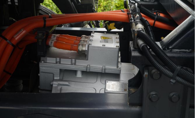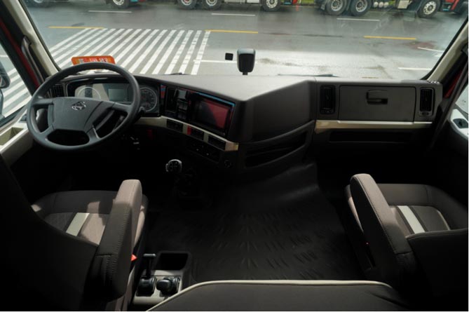 整车采用低风阻驾驶室、加强智能能量回收技术、自主标定控制策略等多种技术加持,新能源专用后桥齿轮传动链优化,反拖扭矩提升33%,标载综合工况电耗低至1.4kW·h/km,搭配分级能量回收,续航里程提升20%,确保更高运营时长。