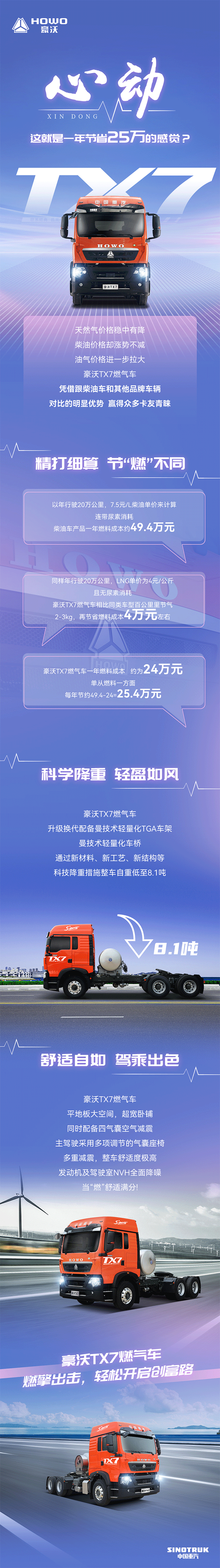豪沃TX7燃气车,让你拥有一年节省25万的体验