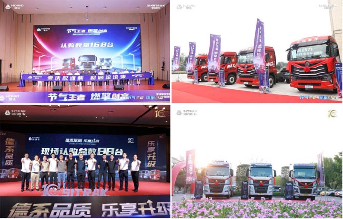 对于重卡市场“金九月”的再现,燃气车可谓是“居功至伟”。2023年,燃气车市场呈现爆发式增长,中国重汽顺势而为,加紧布局燃气车产品,以高科技、优品质、强产能满足卡友需求;与此同时,全国各地燃气车营销活动9月捷报频传:“节气王者 燃擎创富——全新一代潍柴燃气机豪沃MAX产品品鉴会”于吕梁圆满收官,现场达成认购168辆;豪沃TH7危化品燃气牵引车批量交付新疆大客户;“德系品质 乐享升级”庆祝汕德卡上市十周年暨燃气牵引车产品品鉴会在南阳、徐州同步举行,分别斩单86台、88台,上演爆单“双城记”,并在随后的蚌埠、阜阳、济宁、成都等多地绽放极致魅力,掀起认购狂潮。