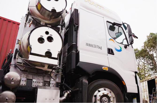 此外,乘龙H7 LNG 4X2牵引车配置1000L+1000L铝合金双气瓶,还可选1350L+1350L双气瓶,使续航里程达4000km,免除频繁加气烦恼,真正做到续航无忧,高效运输。
