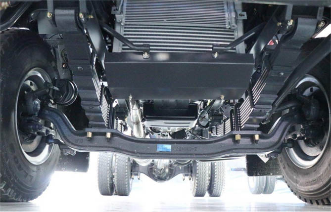 除了对车身尺寸进行优化,乘龙L3自卸车在底盘设计上也投入了大量的精力。采用宝钢材质,通过行业最大的6300T压力机进行一次性冲压成型,工艺成熟,承载性好。同时,通过拓扑CAE技术,对悬架结构进行了优化设计,使受力分布更加合理,有效避免了应力集中的问题,大幅提升了车辆的稳定性和可靠性。