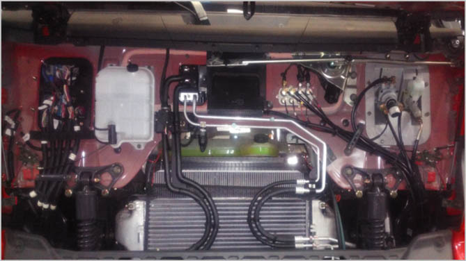 整车搭载采用玉柴S06 270马力发动机,搭配大10档变速箱及速比5.262铸钢后桥,整套动力链堪称黄金动力匹配,动力强劲,成熟可靠,起步加速、爬坡过坎毫无压力。标配电控硅油离合器风扇总成,搭配发动机ECU精准标定,相比市面上普遍采用的直连风扇,能够精确控制水温,使发动机工作在最佳温度。不仅节能降噪,更能实现4%以上的燃油经济性。