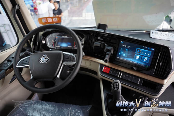 乘龙H5V创富版大单桥还有着超越同级的超大驾乘空间,内饰精致如轿车,软包镀铬装饰、宽敞卧铺与平地板设计,营造出家一般的温馨与舒适,让长途驾驶也能更为舒适。高端航空座椅与智慧车机等先进智能设备的加持,更是让驾驶过程变得轻松便捷,助力卡友高效作业,提升运输效率。
