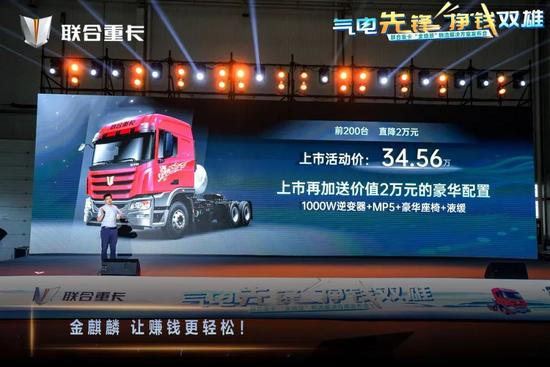 作为行业首款实现“气油同价”的大马力燃气重卡,金麒麟销售指导价36.56万元,前200台更以34.56万的超值价格发售,与市面上同级产品近10万的成本差价引发了现场用户的热烈反响和踊跃订购。
