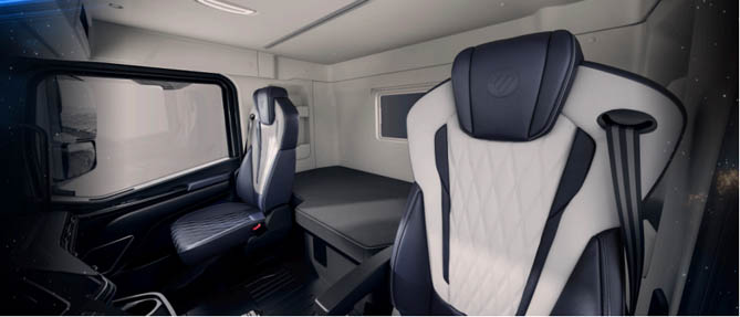 由于工程运输作业环境更加复杂,银河T在内饰设计上采用了低调又沉稳的“暮山蓝”风格,不仅可以让用户行车时更加专注,也更耐脏、易打理、更干净。超大后视窗不仅增加驾驶室透光性,还提供更好的视野,有效减少驾驶盲区,提升行车安全性。中地板超低鼓包设计,使得驾驶室空间通过性更佳。宽敞舒适的卧铺,能让驾驶者得到更好的休息,快速恢复状态。顶置进气系统确保空气更加清洁,进气温度降低6-8℃,进气噪声更小,卧铺处噪声仅有3-4dB,为卡友营造出宁静的驾乘空间,享受更加轻松、舒适的驾驶体验。