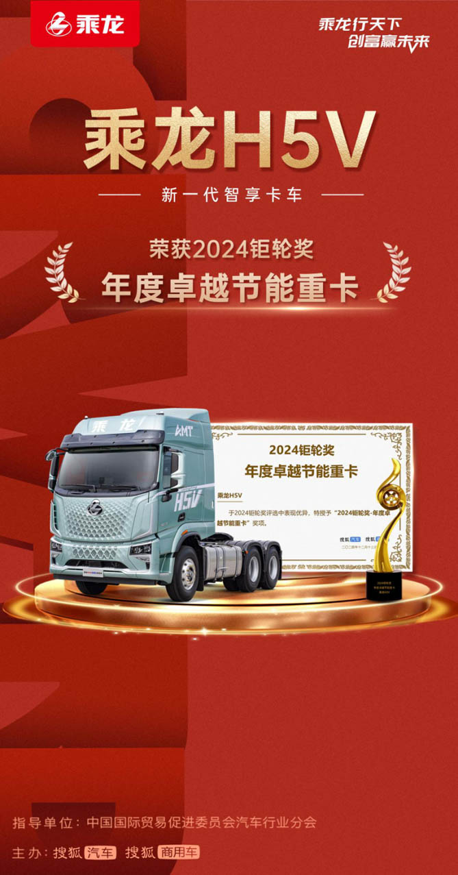 回首2023年,乘龙HK凭出色品质、性能斩获“年度卓越高端重卡”奖,展露乘龙冲击高端市场的底气;今年,乘龙H5V接力,拿下“年度卓越节能重卡”奖,再次证明了乘龙的技术实力。这些荣誉是肯定也是鞭策,乘龙将紧跟智能化、绿色化浪潮,携手合作伙伴,引领商用车领域迈向更高质量的发展新征程。
