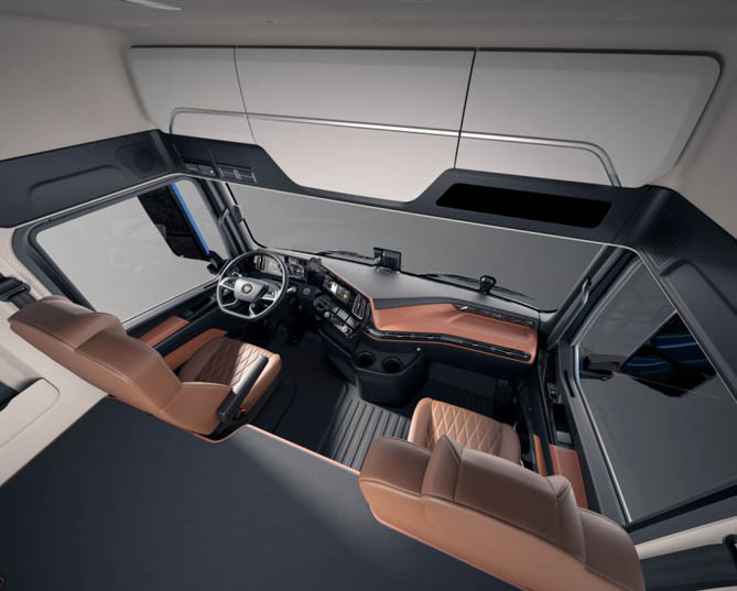 除此之外,欧曼银河3的“臻享座舱”为卡友带来舒适驾乘体验。它拥有行业首款0高度纯平地板、2350mm超宽驾驶室以及900mm可扩展至1200mm大卧铺,再加上800+项智能座舱功能,让卡友在长支线或区域集散运输过程中舒适、娱乐、省心全兼顾,开启多元运输无限可能。