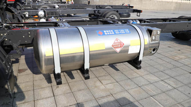 乘龙H5 LNG大单桥载货车针对长途运输需求进行了优化配置。它标配550升气瓶,并可选配550+550升的双气瓶组合。凭借这一出色配置,车辆能够实现超过2400公里的最大续航里程,从而显著降低加气频率,缩短运输时间,进而大幅提升运输效率。
