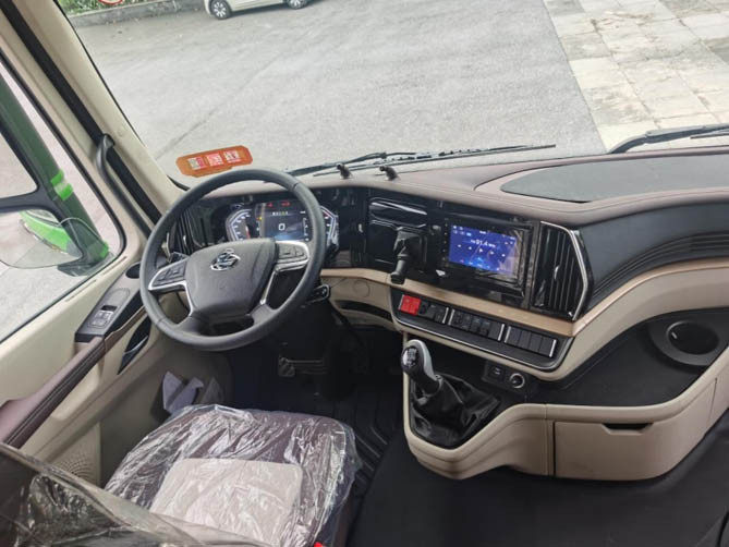 乘龙HK自卸车的外观采用了铠甲风造型,盾形前格栅棱角分明,整车威猛大气,让人眼前一亮。驾驶室采用了行业高端平地板设计,内部空间更加宽敞,搭配宽卧铺,大大提升了驾驶员的舒适度。车辆还采用了气囊减震司机座椅,配备了自动空调、皮质多功能方向盘、12.3寸全液晶仪表以及乘龙V+车联网3.0系统,让驾乘体验更加舒适便捷。