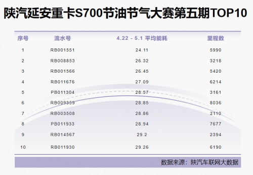 从天行健智能车队管理系统数据来看,本期参赛车辆行驶里程跨度较大,短则2110公里,长则达8036公里,不同的运距、载荷与地形,对车辆能耗形成了全方位的严苛考验。但即便在这样悬殊的里程条件下,卡友们依旧稳定发挥,交出了亮眼的答卷,同时这也表明延安重卡S700并非仅在特定条件下“偶露峥嵘”,更具备适应多样化运输场景的卓越性能,为卡友们在各种运营环境下实现“降本增效”提供了可靠保障。