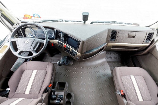 驾驶室是卡友的移动之家。乘龙H5电动饲料车配备皮质多功能方向盘、气囊减震座椅,有效缓解长途驾驶疲劳。集成乘龙V+新能源车联网系统,行车记录仪带卫星定位,实现车辆状态远程监控、能耗分析、行驶轨迹管理,助力车队或个人用户精细化管理,提升运营效率。AMT自动变速箱的加入,显著降低驾驶强度,让复杂路况下的操控更轻松。