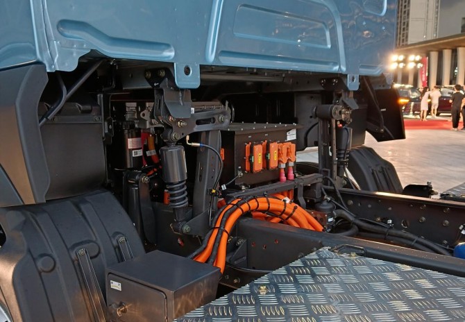轻量化设计进一步提升了载货能力与经济效益。乘龙翼威5大单桥采用模块化底盘、轻量化车身,搭配高能量电池,降重而不降质,整车自重较行业平均水平轻300kg,在保证车身强度的同时显著增加了有效载荷。搭配275/80R22.5轮胎和10.5T电驱后桥,车辆在复杂路况下的通过性和稳定性也得到充分保障,完美适应城际配送与区域物流的高频运输需求。