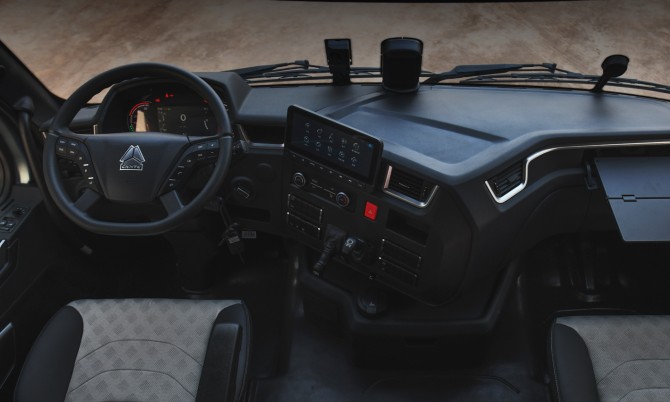 运输效率固然重要,但卡友的健康与舒适同样是中国重汽打造产品时的核心考量。黄河H7深度洞察卡友需求,打造兼具舒适、健康与智能的座舱环境,让每一趟运输之旅都更轻松、更安心:驾驶室座舱通过“国家级”CN95健康座舱5A认证,头等舱级科技智慧座舱可比肩豪华轿车,车内更搭载10.25寸悬浮液晶屏、驾驶疲劳监控DFMS、极致控温双模空调等一系列人性化功能设备。在智能安全方面,黄河H7搭载了L2+级辅助驾驶系统,支持高速NOA领航辅助,可有效规避潜在风险、有效降低事故发生率,即便单司机运营也能更安心。