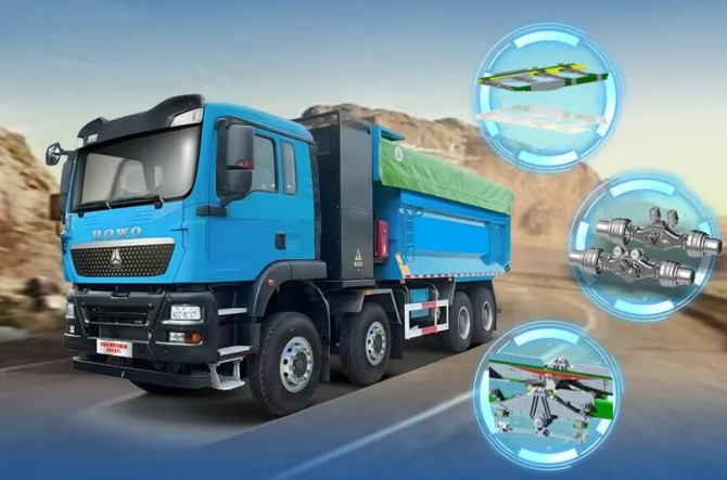 城市基建运输场景中,路面颠簸、工况复杂等难题层出不穷,对车辆的承载能力与安全性提出了严苛考验。因此,豪沃TX新能源自卸车在品质打造上不遗余力、层层加码:搭载曼技术工程驱动桥,配合精工级车架设计,使车辆整体受力均匀合理;再加上加强版悬架系统与长寿命板簧的加持,其承载能力远超普通自卸车——即便满载砂石、钢筋等重货,穿梭在坑洼工地也能稳健前行,无惧恶劣工况挑战,大幅降低维修频次,保障运输作业不间断。