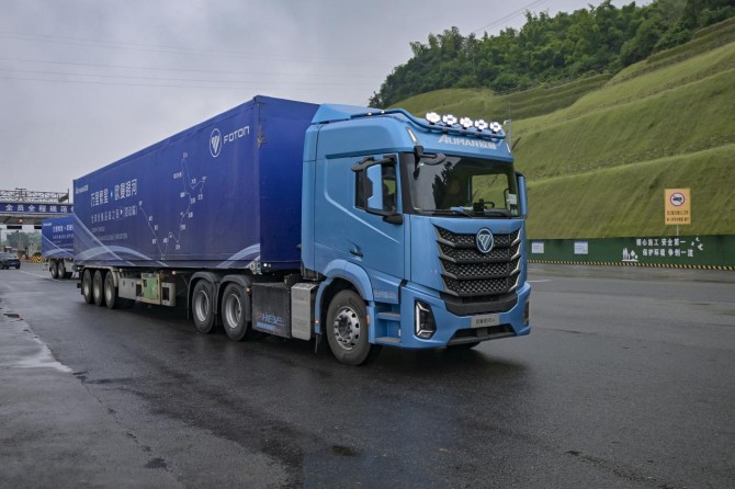 福康13L 620大马力混动专用发动机的热效率突破50%,比油耗低至169g/kW·h,发动机节油可达5%。干线运输工况下,当车辆低速行驶时,系统能智能切换至纯电模式,减少发动机启停与怠速油耗,使长时间巡航更加顺畅、经济。得益于混动系统的高效协同,银河9能够保持发动机始终运行在最优燃烧区间,稳定输出同时降低油耗,让干线运输更节能、更稳定。