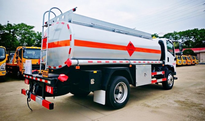 乘龙L2加油车严格遵循行业规范,油罐采用银粉色油漆,搭配反光带及“易燃液体”标识,显著提升夜间及复杂环境下的辨识度,全方位降低作业风险。整车尺寸、罐体规格完全匹配公告要求,确保上牌无阻。乘龙L2加油车,不仅是可靠的运输工具,更是您危化品运输业务中值得信赖的坚实伙伴!