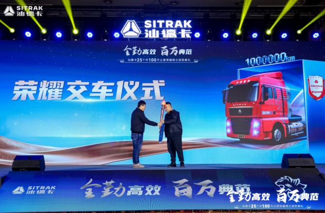 "全勤高效 百万典范——汕德卡25个月100万公里荣耀骑士颁奖典礼"圆满收官,本次典礼不仅见证了25个月100万公里的突破性成就,更传递出汕德卡“全勤高效,每公里皆价值”的品牌追求。中国重汽汕德卡将继续以匠心品质推动中国高端重卡行业向上而行,携手合作伙伴驶向高效物流的崭新未来。