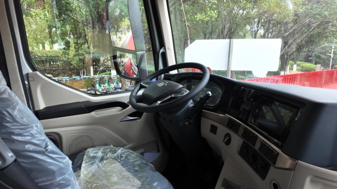 该车搭载法士特电机与法士特变速箱的黄金动力组合,峰值功率可达410kW。这样的动力储备,面对乡村小路的陡坡、坑洼路段,即便车辆满载饲料,也能轻松应对,起步平稳、加速有力,不会出现动力不足导致的爬坡吃力、行驶卡顿等问题。