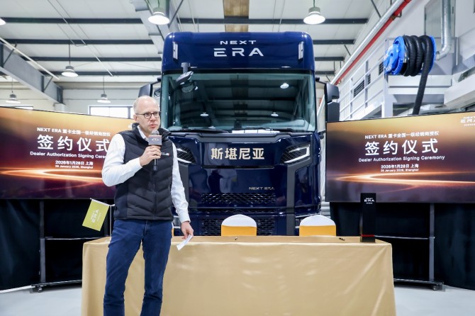 【中国上海,2026年1月28日】今日,斯堪尼亚与传拓集团推出的NEXT ERA重卡,在上海NEXT ERA经销商支持中心正式举行全国一级经销商授权签约仪式。签约现场,NEXT ERA重卡与18位商用车行业资深经销商投资人,正式签署26家全国一级经销商授权协议,标志着NEXT ERA经销商网络建设全面落地。此前,NEXT ERA重卡发布当日,其上市限量版车型便宣告预售一空,此次销售服务网络的正式落地,为其在华发展再添重磅里程碑。目前,NEXT ERA重卡已在全国布局超100家销售及服务网点,实现中国市场全域覆盖;加之本月中国零配件中心正式投入运营,NEXT ERA重卡已构建起“产品落地、销售渠道、售后服务”三位一体的完整布局,为2月起首批牵引车系列的陆续交付筑牢保障,全面迈入中国市场发力新阶段。