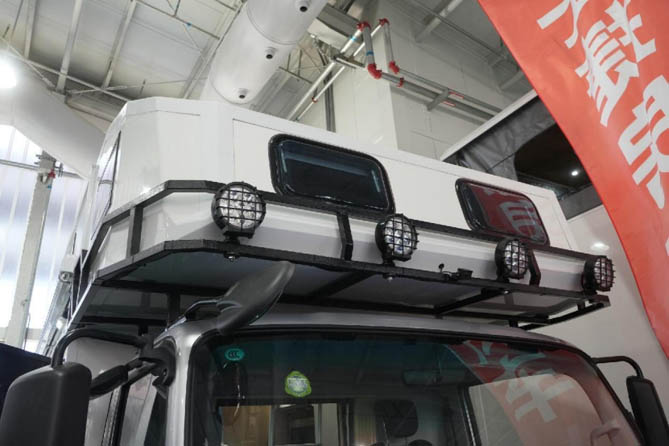 车辆上装由威士捷房车打造,采用别墅结构,带来三层生活空间。箱体采用玻璃钢一体成型箱体,轻量化的同时可靠性也不错。与此同时,箱体可进行拆卸抬升,驾驶室可进行翻转,便于后期维护保养。
