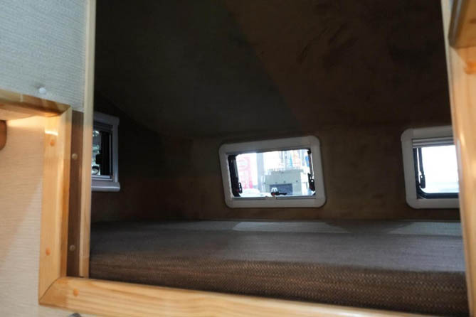 额头床区域空间巨大,配备有前窗和侧窗,改善采光,降低压抑感。